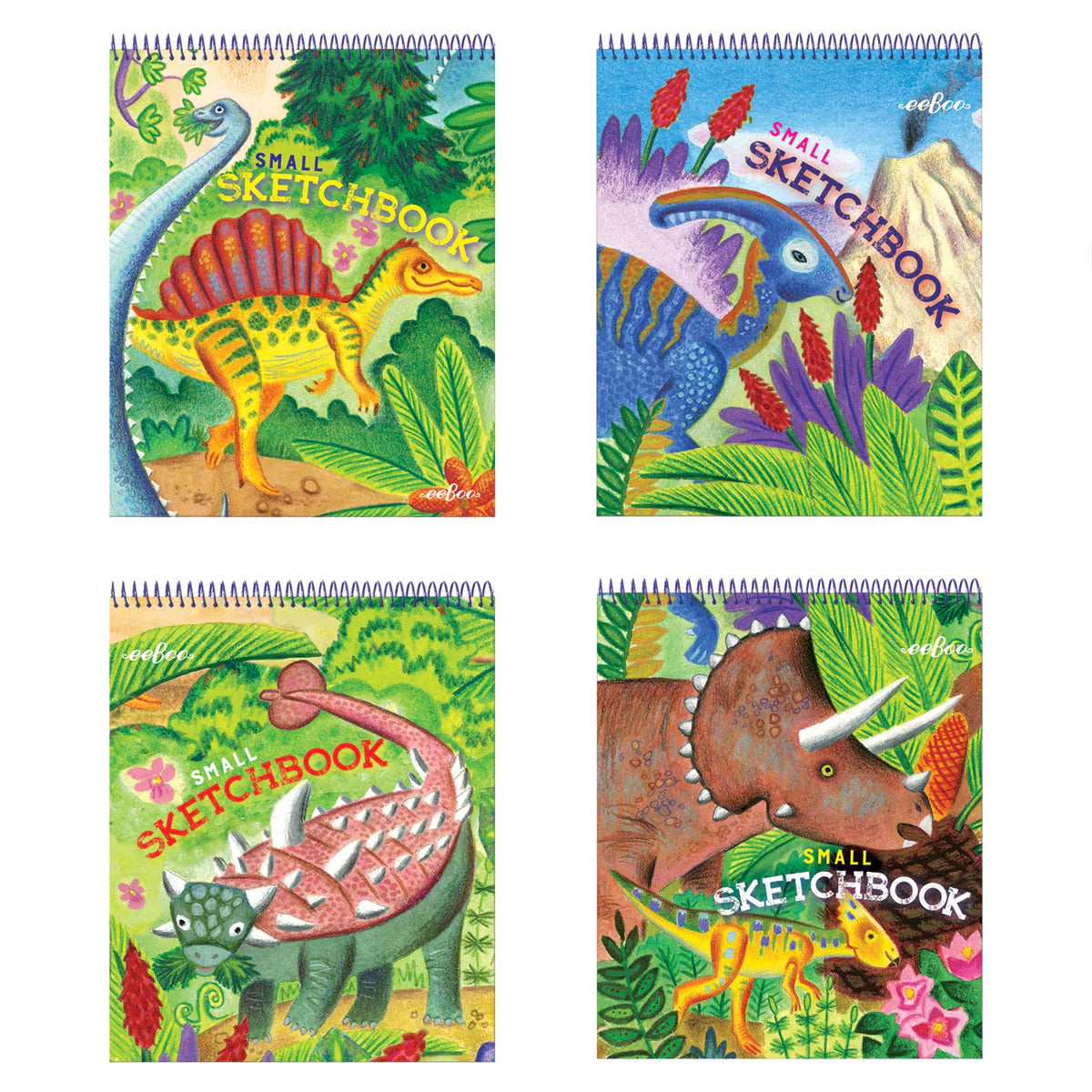 In each assortment there are 24 small sketchbooks featuring dinosaurs. Each sketchbook has 30 sheets. Which prehistoric creature will you draw? Illustrated by Monika Forsberg.