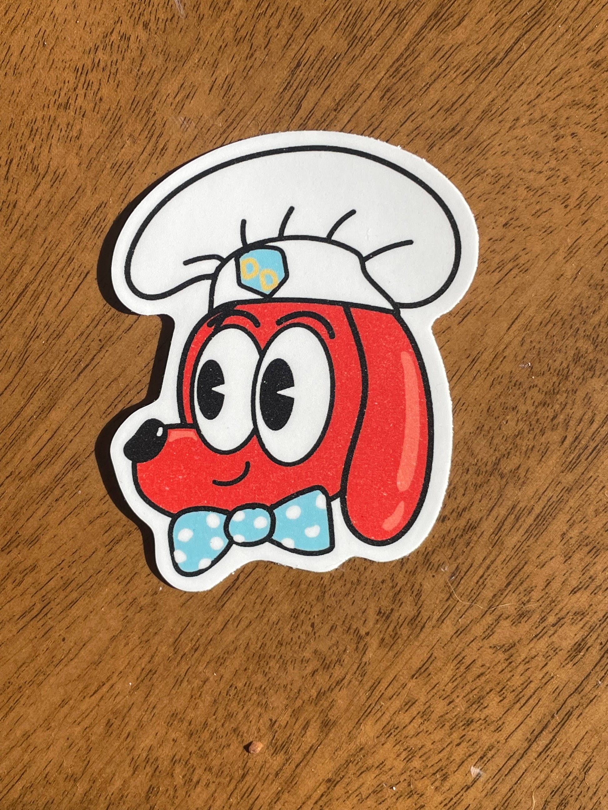 A sticker of the iconic dog mascot of the Bay Area Doggie Diner! Maybe just a little cuter...