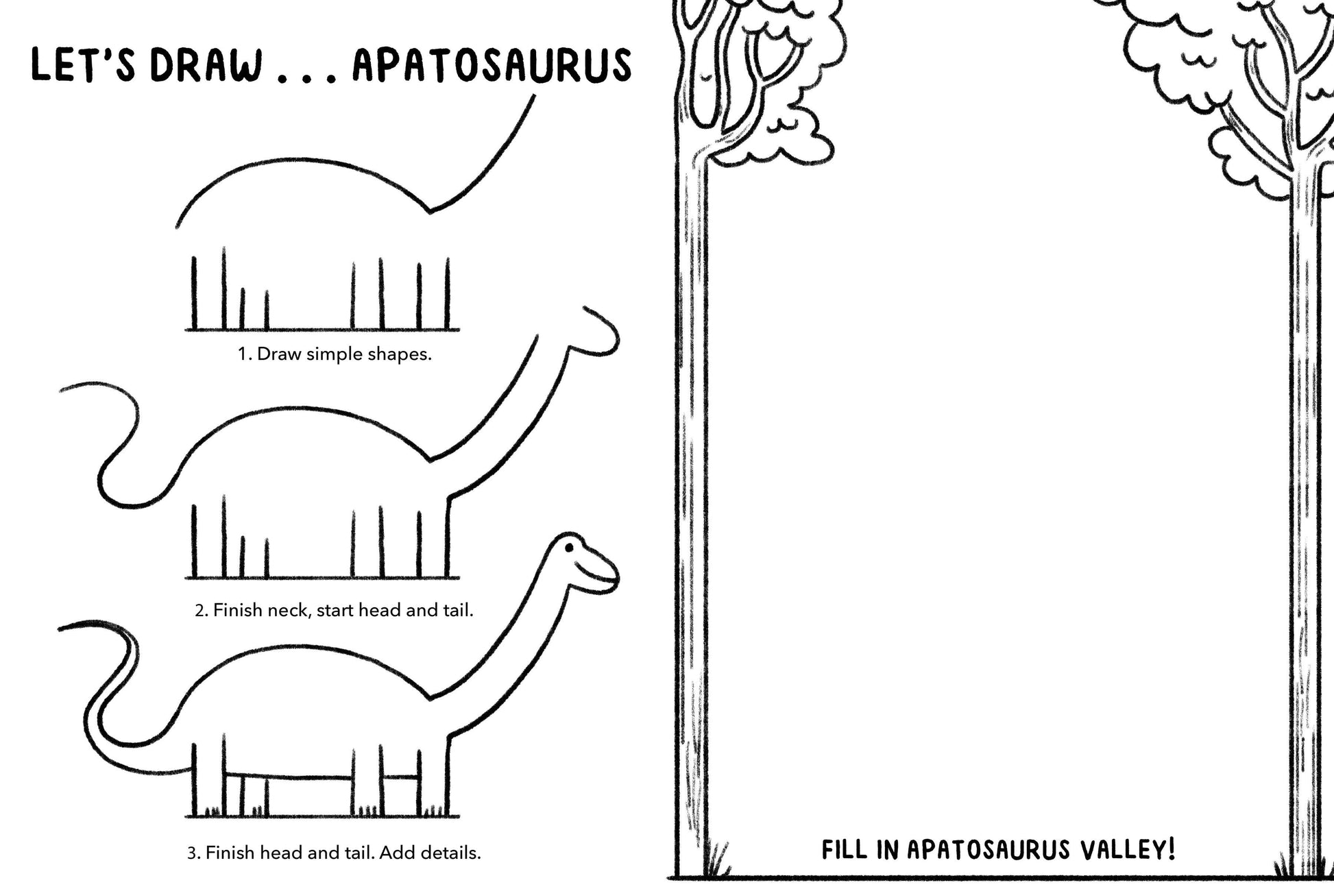 This mini doodle book bursts with fully illustrated pages, each with a different activity to get kids drawing their prehistoric favorites. Add teeth to a T-Rex, fill the sky with Pterodactyls, draw what hatches from a dino egg, and much more!