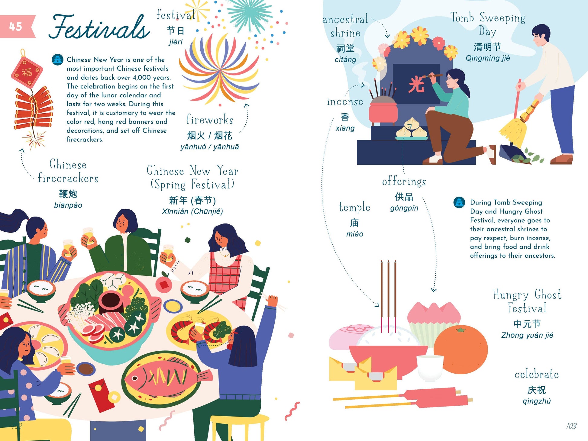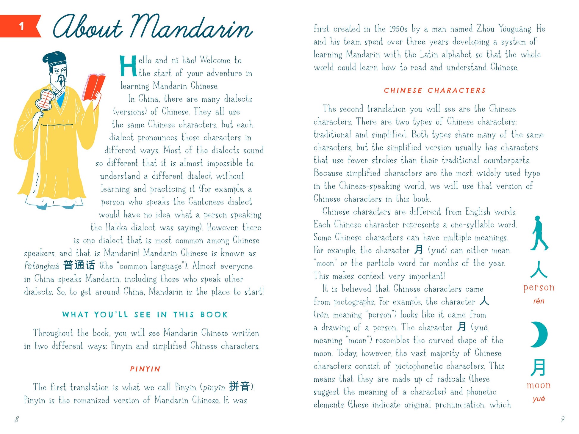 Introduce your child (or yourself!) to the incredible language of Mandarin! Featuring over 800 first words with bright, bold illustrations, My First Book of Mandarin provides each word in English and simplified Chinese characters, with a romanization that makes pronunciation a breeze. Readers will also find cultural tips, sample sentences, and simple hints on usage and word choice. An index in the back includes a complete list of all words in the book with handy page references. With a special emphasis on the culture and customs you'll find in China itself, My First Book of Mandarin is divided into sections including People, Personal Pronouns, Courtesy, Geography, Family, Transportation, Science, Sports, Holidays and Festivals, Meals, and more.