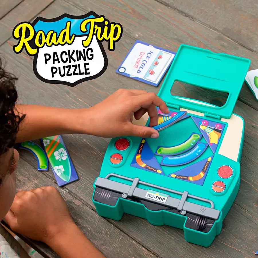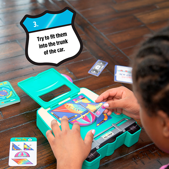 The ultimate beach vacation is about to begin! But first, you've got to load up the car... Pick a challenge card and then collect the indicated items. Do you have the smarts to perfectly arrange all of them into the trunk? It starts out easy with triangle boomerangs and a square cooler. But pretty soon, you'll be debating, "c'mon, is the giant beach ball really necessary??" Put your packing - and problem-solving - skills to the test with the playfully perplexing Road Trip Packing Puzzle.