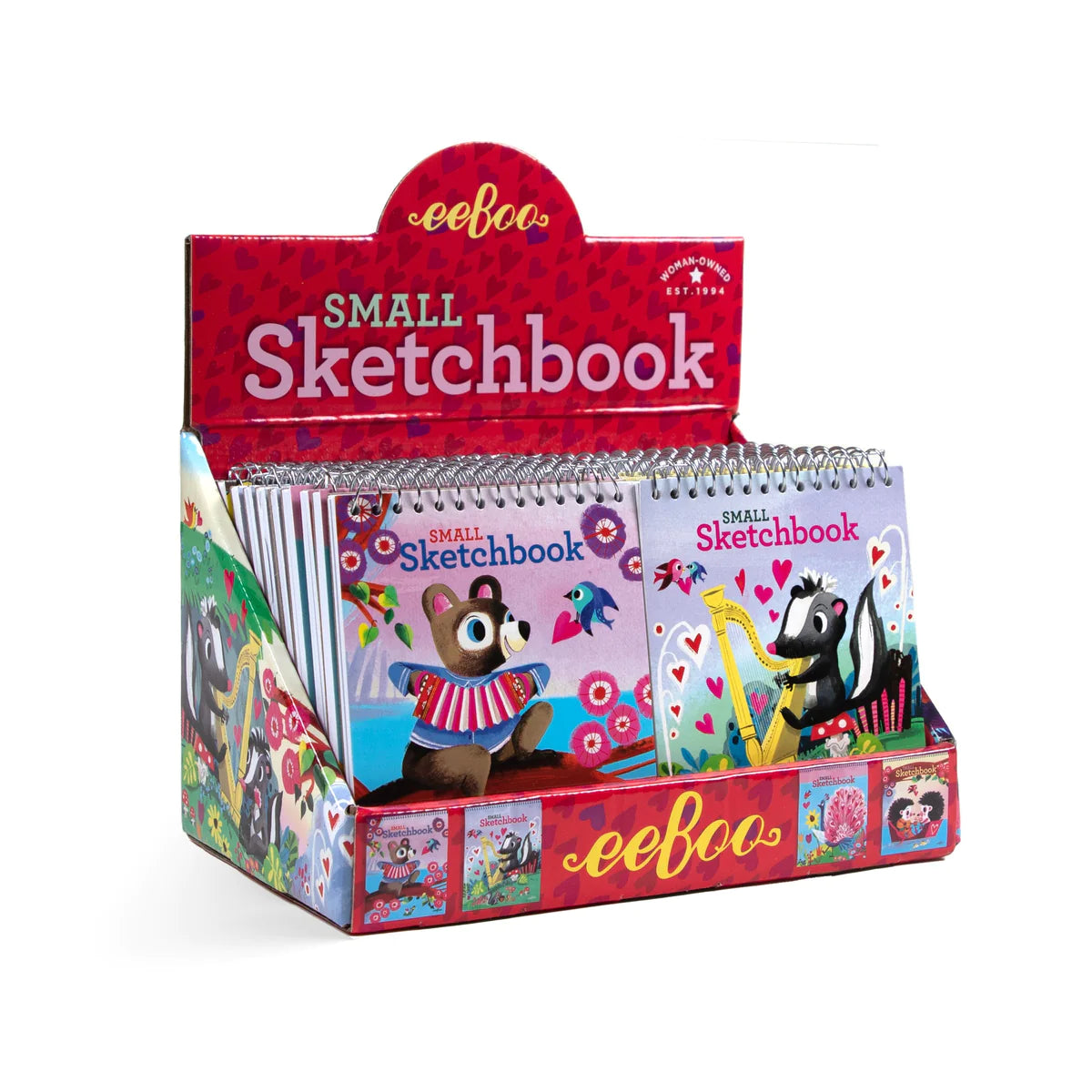 Love and friendship-themed High-quality small spiral sketchbooks featuring Hedgehogs, Bears, Peacocks, and Skunks. Great for travel.